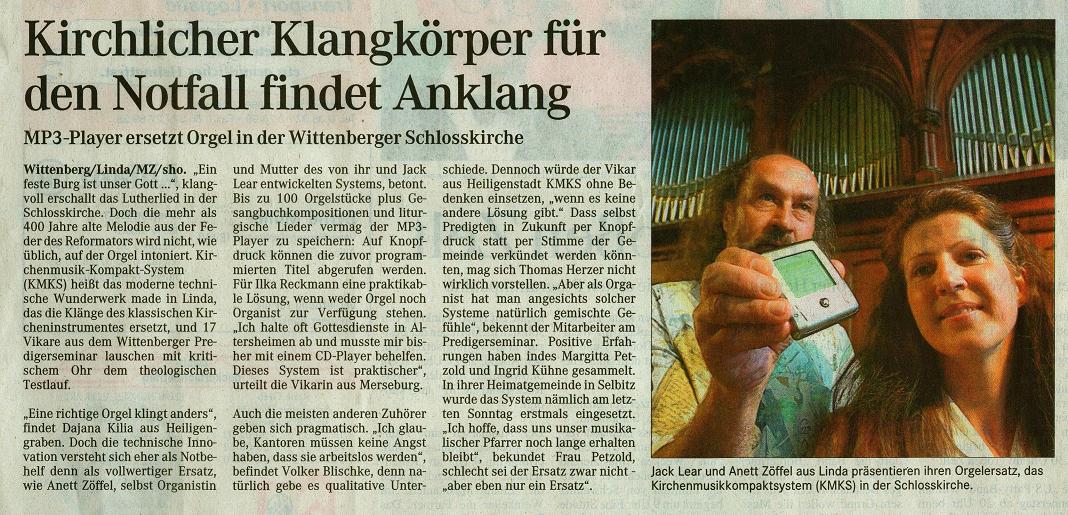 Mitteldeutsche Zeitung (MZ) vom 1. Juli 2006
