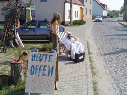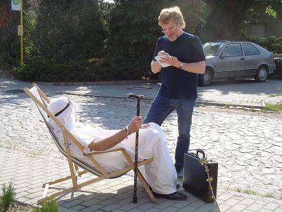 Scheich Al La Lei Humbug XVI. vor dem "Kunsthaus Europa"