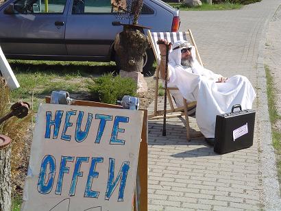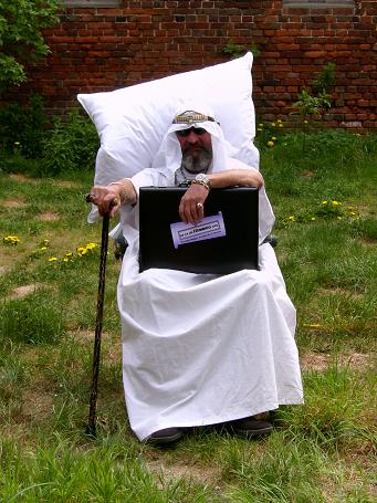 Scheich Al La Lei Humbug XVI. bei seinem Besuch im DigitalStudioLinda-DSL in Linda (Der Scheich besitzt 199,99 % Anteile von DSL)